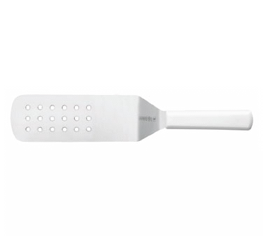 Elevate Kitchen Operations with Mundial, W5681, Turner, Perforated, Stainless Steel. This high-quality turner is a must-have tool for any commercial restaurant. With its 8" x 3" perforated stainless steel blade, it allows for easy flipping and draining of food items. The molded white polypropylene handle provides a comfortable grip, ensuring precise control while cooking. What sets this turner apart is its sanitized antimicrobial protection, which helps maintain a hygienic kitchen environment. NSF certified, it meets the highest standards of safety and cleanliness. Whether you're flipping burgers on the grill or serving delicate pastries, this turner is designed to withstand the demands of a commercial kitchen. Trust Mundial for reliable, durable, and efficient kitchen tools.