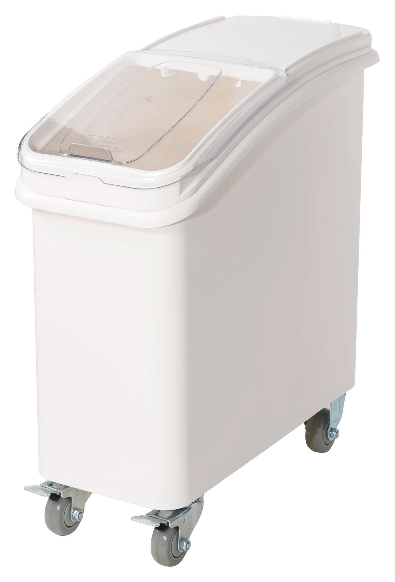 Built with a durable polypropylene body in a clean white finish, the Ingredient Bin is both sturdy and easy to clean, meeting the rigorous standards of the NSF. The bin is equipped with three caster wheels, two of which have brakes, providing both mobility and stability. This makes it simple to move the bin around your kitchen as needed and lock it in place when in use.